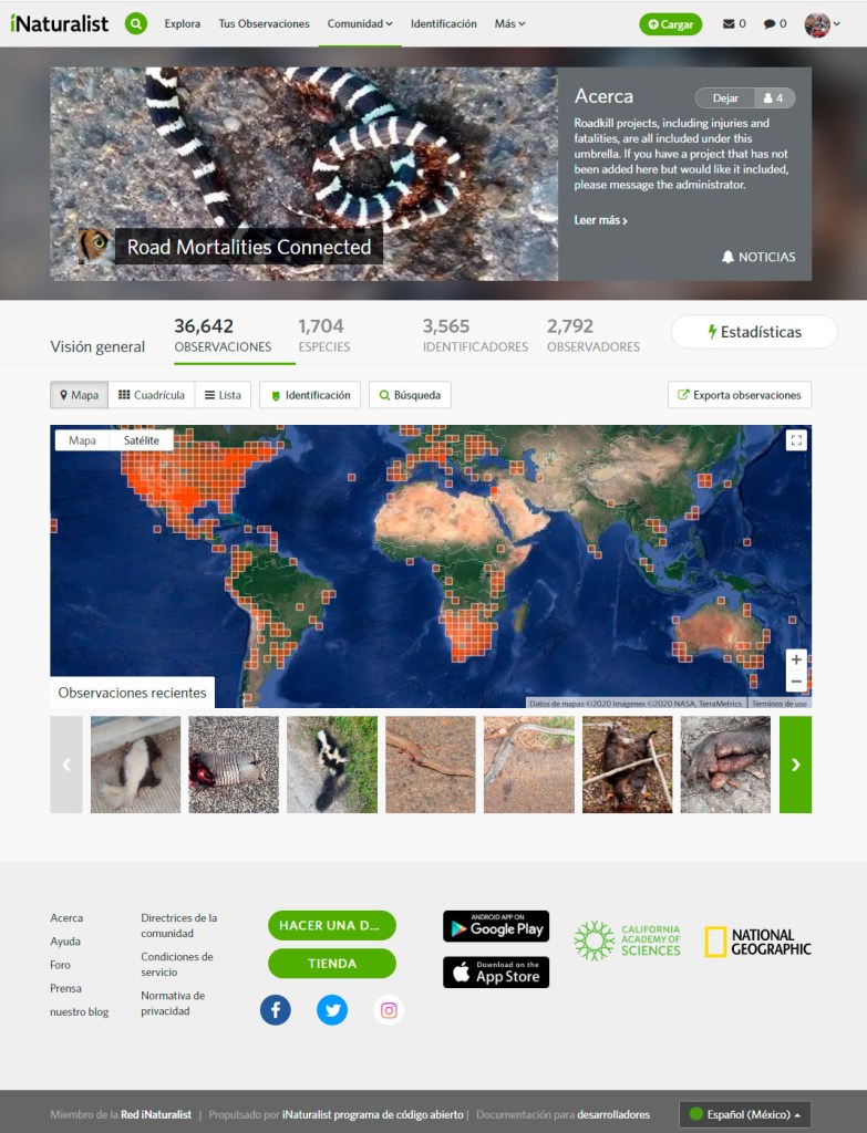 En la plataforma de ciencia ciudadana iNaturalist, existen múltiples proyectos locales de atropellos en diferentes partes del mundo (hey, también se pueden subir seres vivos ;)) donde la gente puede compartir sus observaciones georreferenciadas. Haciendo una revisión a un conjunto de proyectos, englobados como Road Mortalities Connected, a partir de los que separé a los animales vertebrados terrestres y creé un gráfico derivado.