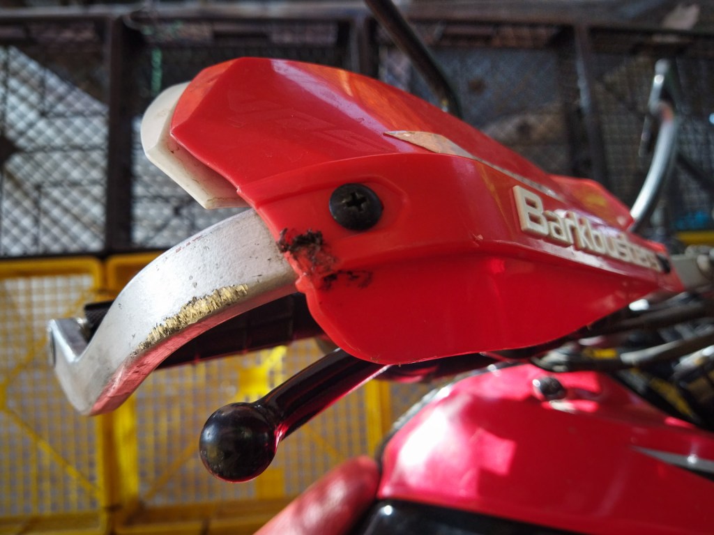 Creo que pudo haber sido peor, ni siquiera me puse agitado o me estresé más de la cuenta, así que doy las gracias a mi equipo completo de protección (noté que mi bota tenía un poco de rasguños, pero no sentí nada, ¡así que excelente!) y a los cubre puños Barkbusters, esas cosas me han salvado los manillares un par de veces ya (¡y ahora probablemente mi mano!).