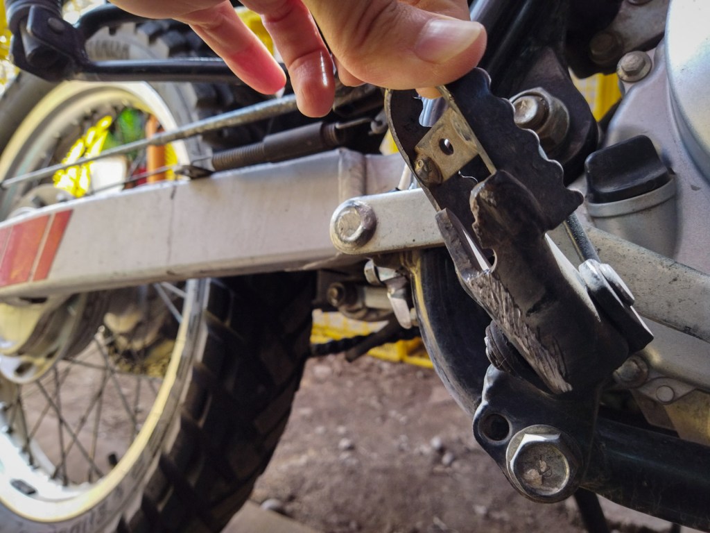 No tuve problemas recogiendo la moto y la moví a un lado de la calle para hacer una revisión de daños. Sólo dos puntos se rasparon: el cubre puño y el pedal. (Nada que un poco de lija no pueda arreglar).