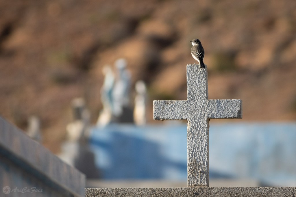 Salí a pajarear temprano una vez más antes de irnos, recorrí cerca del cementerio de Canela, donde varios pajaritos hacían su vida, entre ellos una yal que buscaba comida para un pequeño pichón que se escondía abajo de unas tumbas, otros chirihues que cantaban al costado de un cerro y un diucón que iba y venía a posarse sobre una cruz.