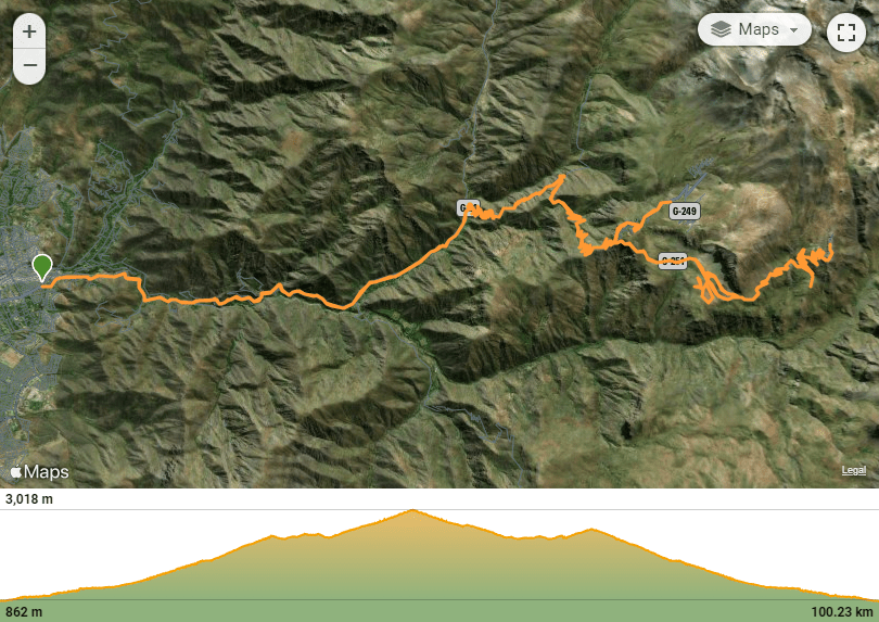 Empecé a subir más tarde de lo que me gusta, pero la ruta estaba tan vacía (típico Farellones sin nieve) que daba lo mismo. Santiago quedaba atrás y por un momento se me ocurrió ir a conocer el camino a La Disputada, pero en el segundo que apareció la bifurcación La Disputada – Farellones terminé por ir al segundo, comenzando las curvas.