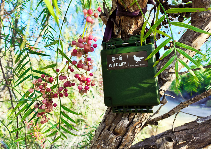También por el lado de los sonidos, esta unidad de grabación autónoma puede programarse para que grabe en rangos horarios determinados y sirve para registrar las vocalizaciones de aves y anfibios durante días o hasta meses.