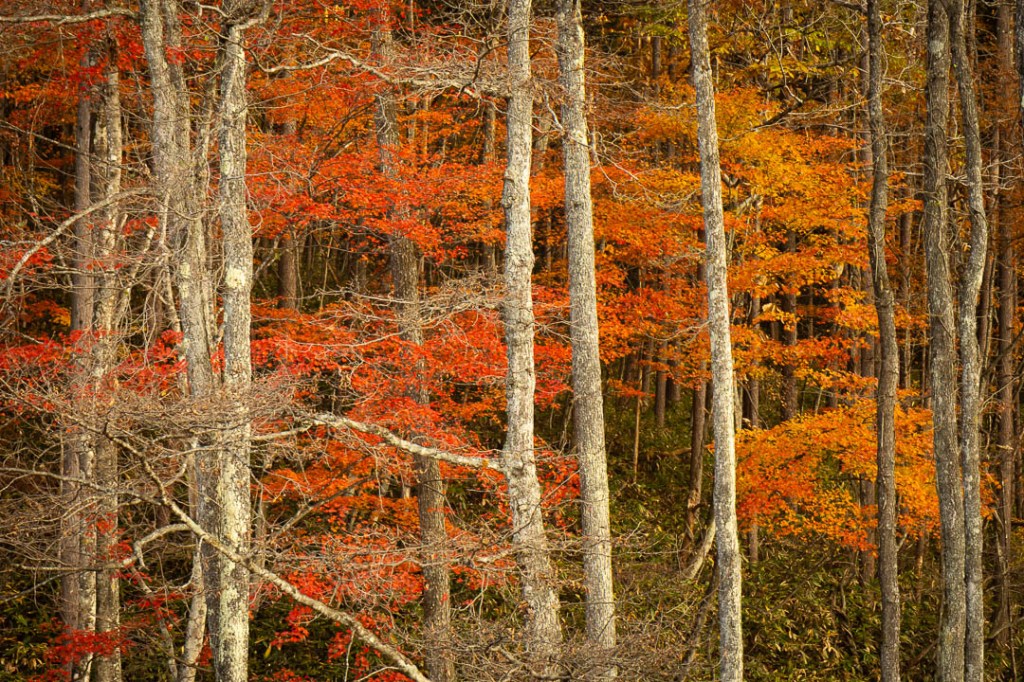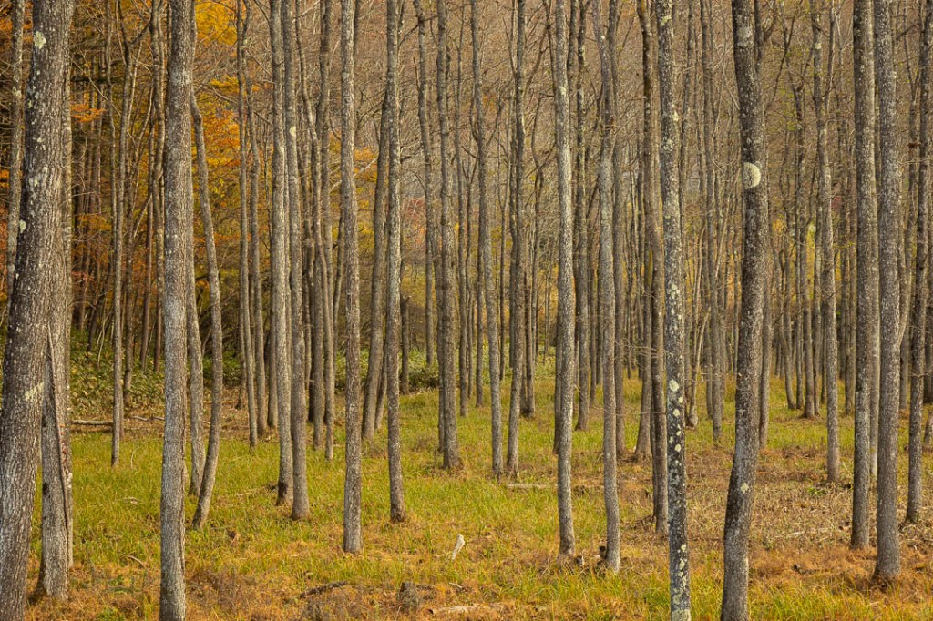 Nos dirigimos al oeste, otra vez subiendo las montañas vestidas de otoño. Fue una sorpresa encontrarnos con grandes extensiones cultivadas en planicies de altura, rodeadas de cortinas boscosas que marcaban un claro borde entre ambientes. Estos campos agrícolas formaban un patchwork de dos colores, entre tierras aradas oscuras y el verde de los vegetales.
