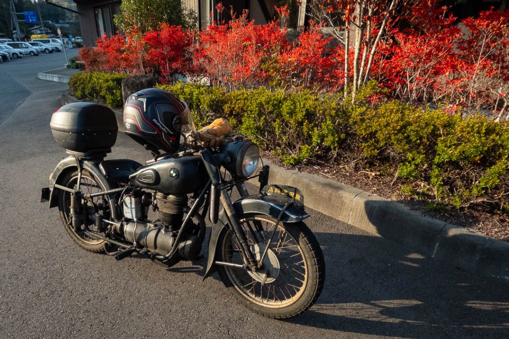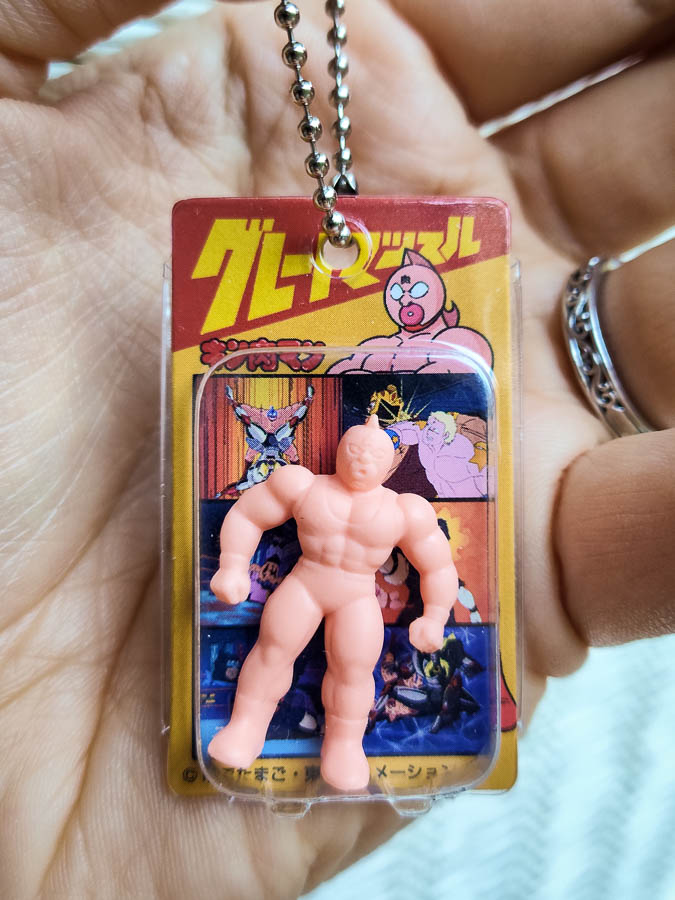 En el estacionamiento había una belleza antigua de dos ruedas, de hace 70 años, y junto a ella estaba sentado un hombre japonés, quien posiblemente compartía la edad de su moto. Lo otro fue gachapon retro de Kinnikuman.