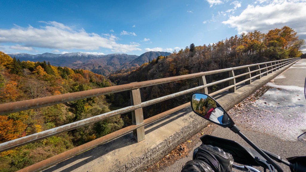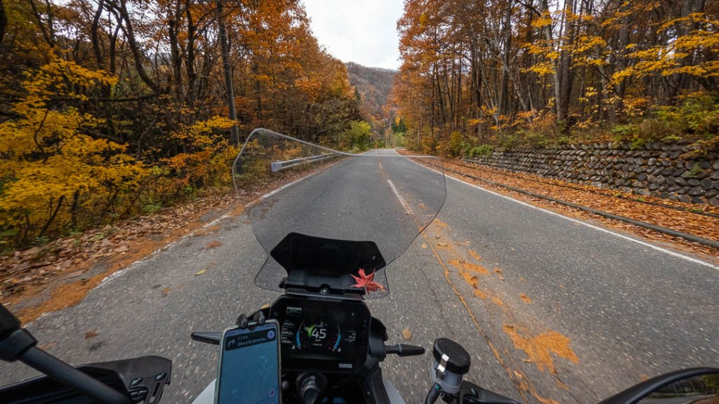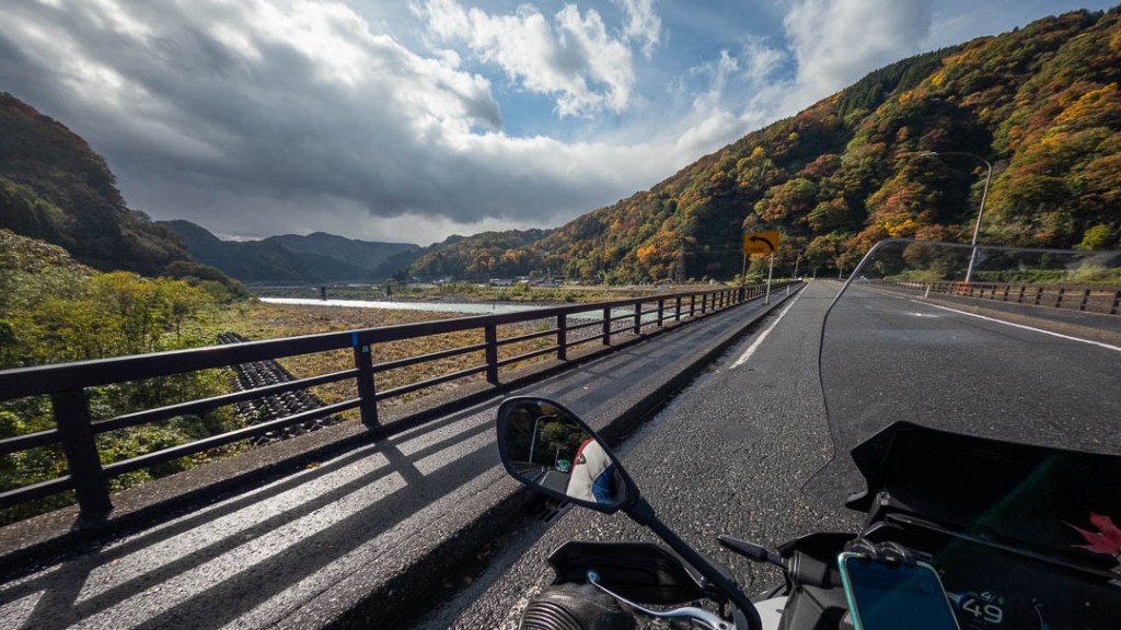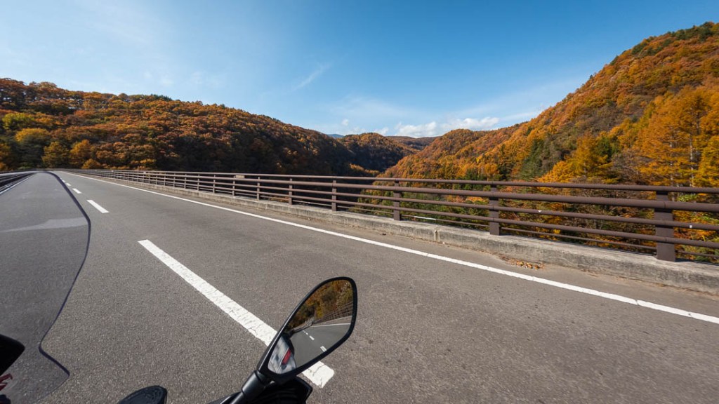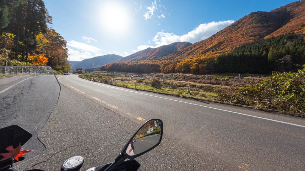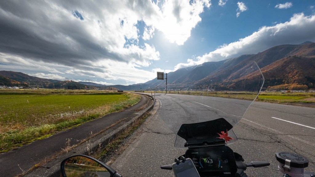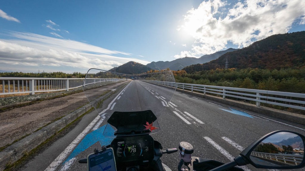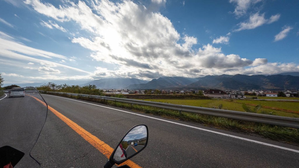 Con la determinación de apresurar el paso y limitar las detenciones a la michi-no-eki para poder comer, cruzamos el paisaje de valles y montañas disfrutando de la velocidad de la moto.