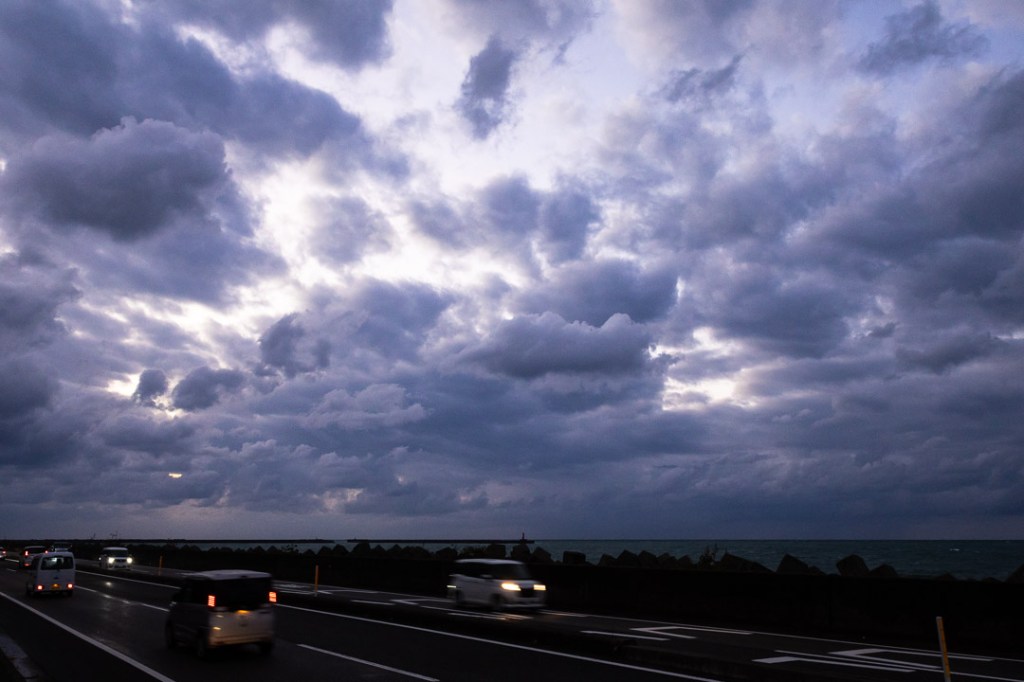 Volvimos por donde llegamos, es decir, por la Ruta Nacional 148, mientras veíamos cómo las nubes que acababan de bañar Itoigawa se acercaban a nosotros. Más bien, éramos nosotros quienes íbamos alcanzando la lluvia que nos había dejado atrás.