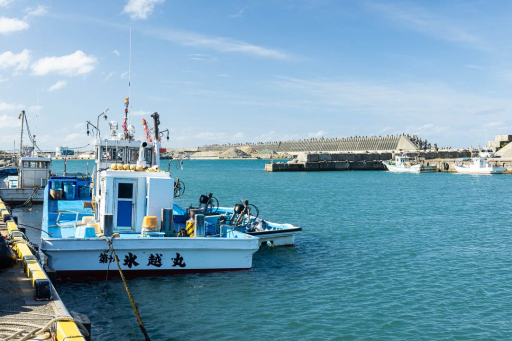 Disfrutamos estar junto al mar mientras avanzábamos hacia el oeste. Intentamos alcanzar la desembocadura del río Himekawa, pero estaba un poco a trasmano como para llegar caminando, así que dimos media vuelta y ahora apuntábamos hacia la playa de jade y la desembocadura del río Umi.