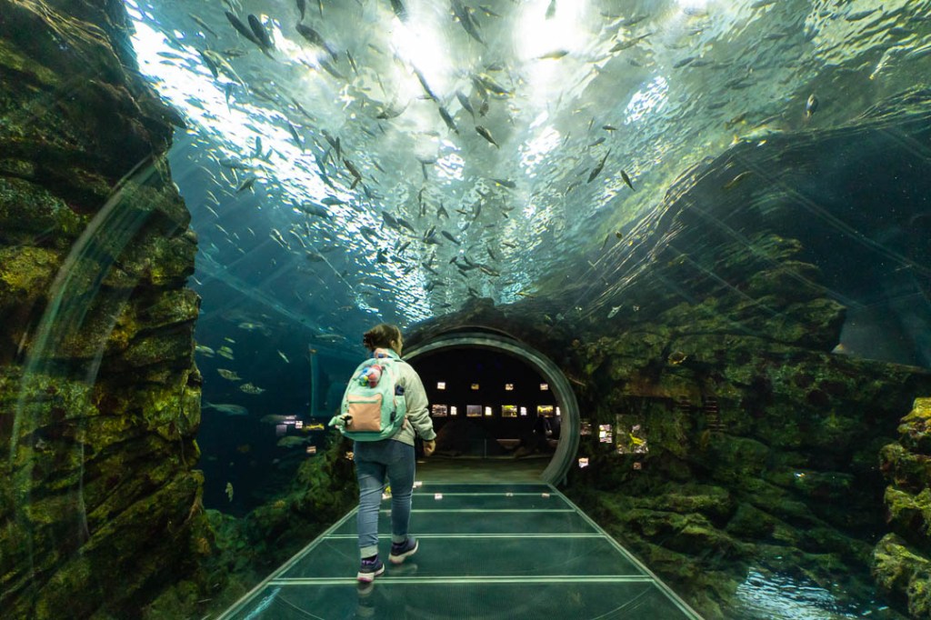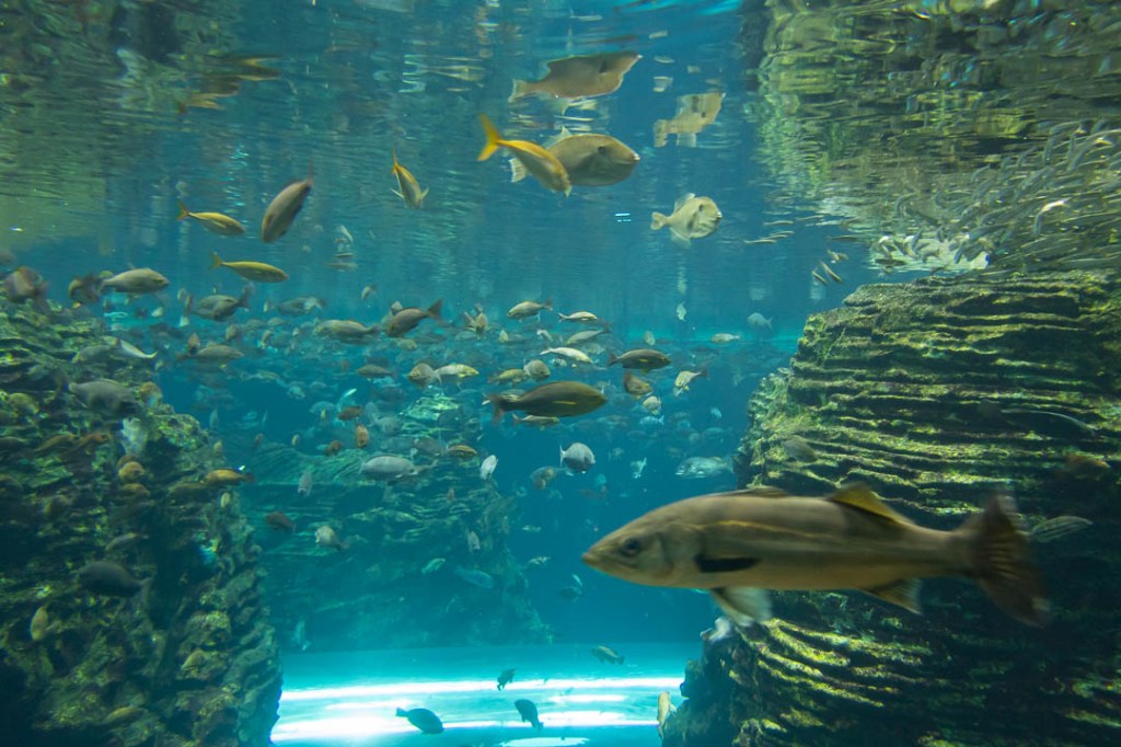 Al entrar al acuario se sube al piso 3 para comenzar el recorrido mientras desciendes. (¿El IKEA del mar?). A diferencia del acuario de Sumida, en Tokyo, este tiene tramos al aire libre, por lo que se podía generar una conexión directa entre el acuario y el mar gracias al diseño y un juego de perspectivas.