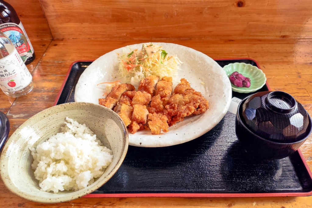 Aquí pudimos comer una generosa porción de comida local llamada sanzokuyaki. ¡Muy rico!